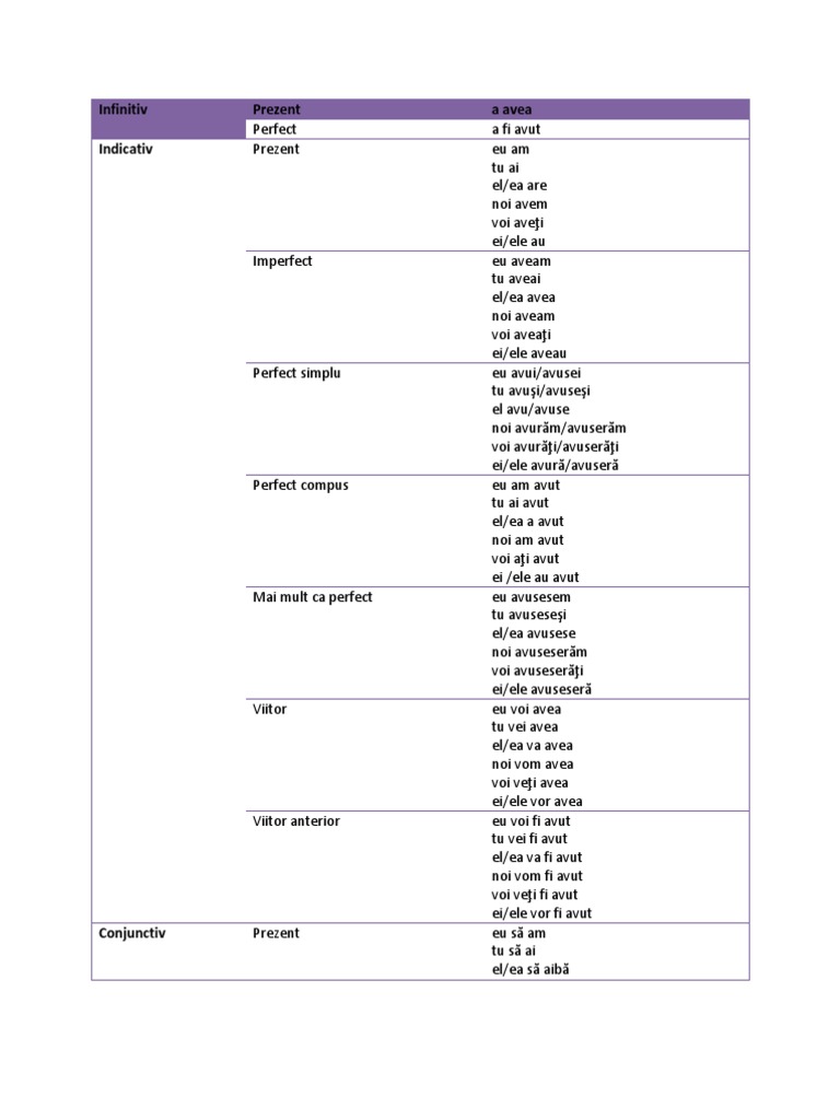 Conjugarea Verbului A Avea