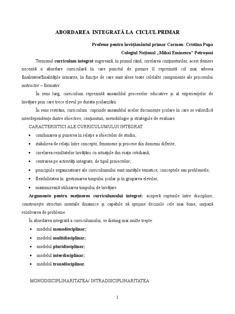 Http Scoalaivasiuc Ro Cercped Inv Referat Abordarea De Tip Integrat A Continuturilor Invatarii Pdf