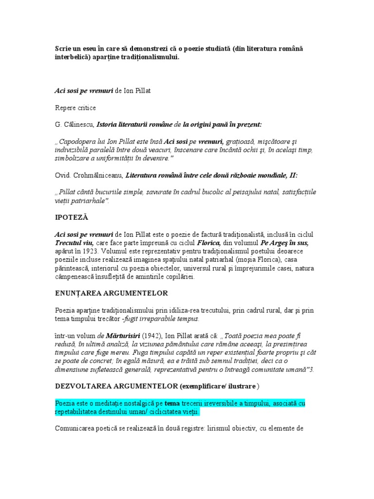 Aci Sosi Pe Vremuri Eseu Ion Pillat