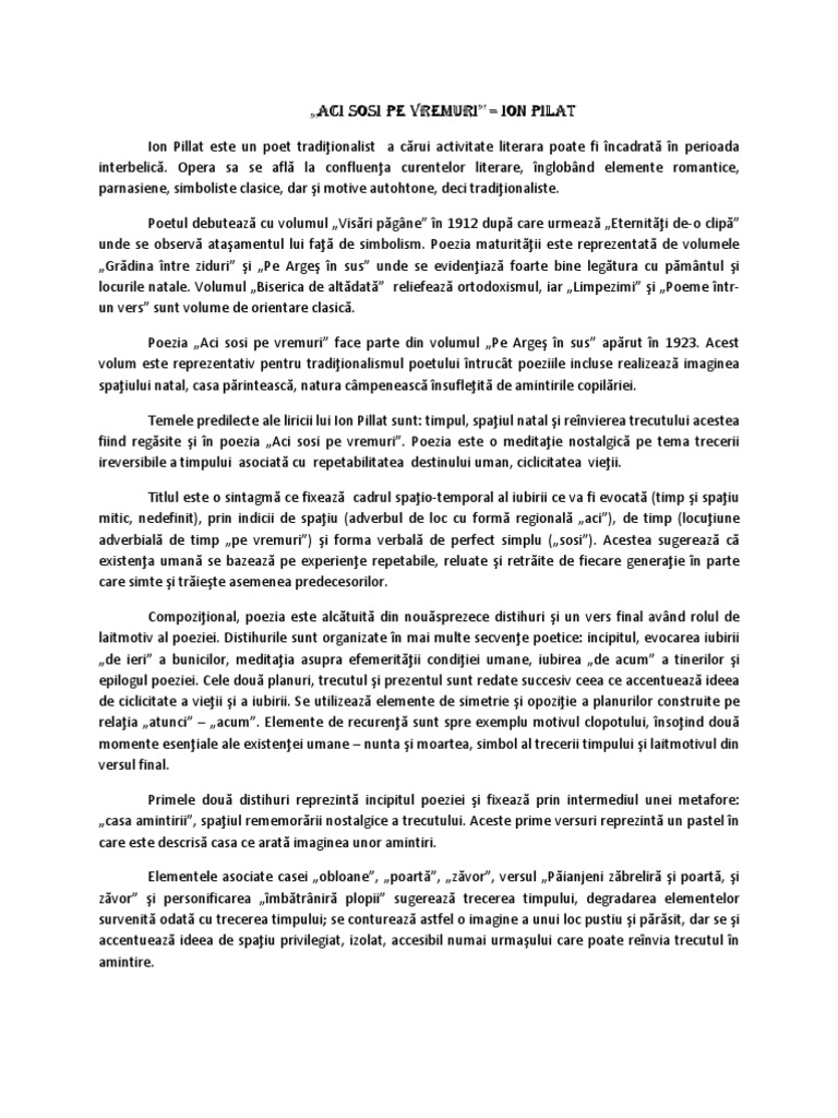 Eseu Aci Sosi Pe Vremuri Ion Pillat