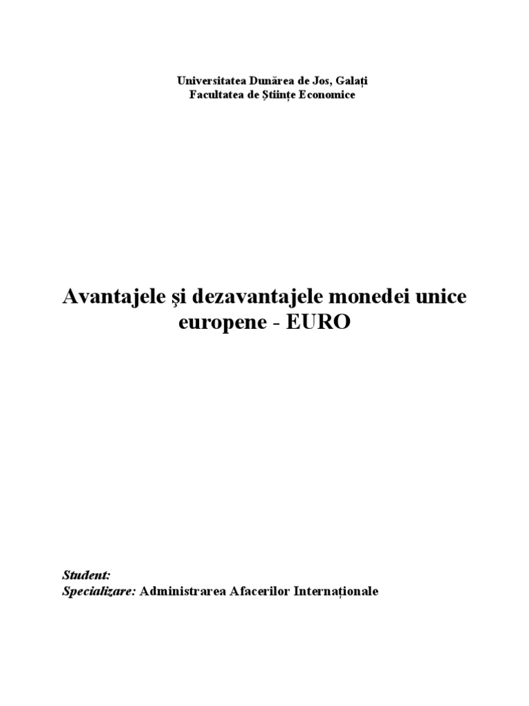 Referat Euro Avantaje Si Dezavantaje Stiinta Administratiei 295256