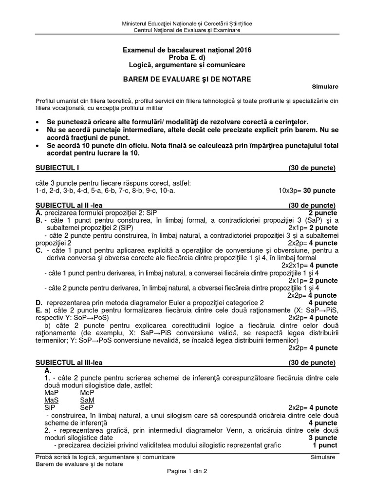 Simulare Bac 2019 Baremele și Subiectele Integrale De La Simularea La Informatică Chimie Biologie Fizică Geografie Filosofie Logică Economie Psihologie și Sociologie Edupedu
