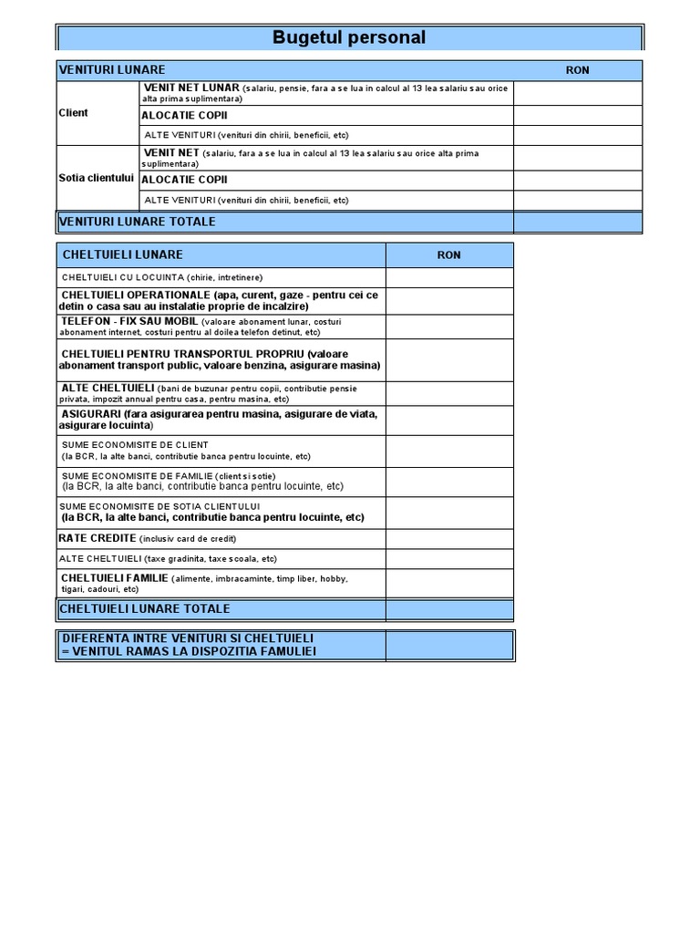 Buget Personal Descarca Gratuit Un Model De Buget Personal