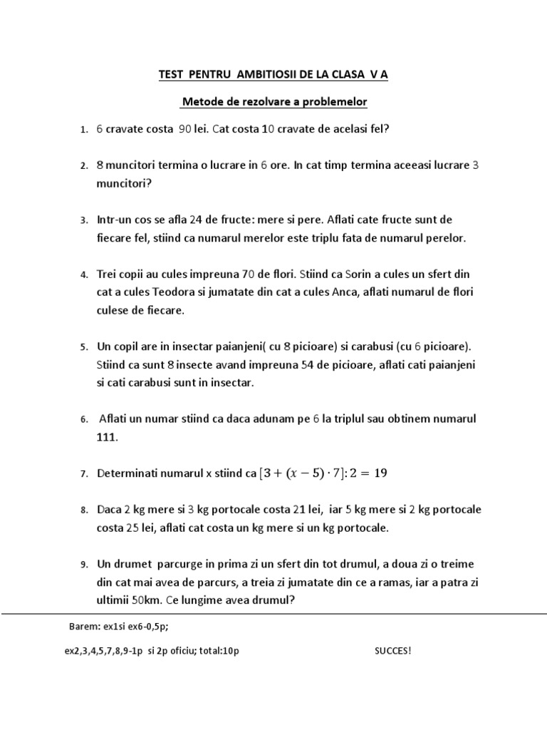 Test Pentru Ambitiosii De La Clasa V A Docx