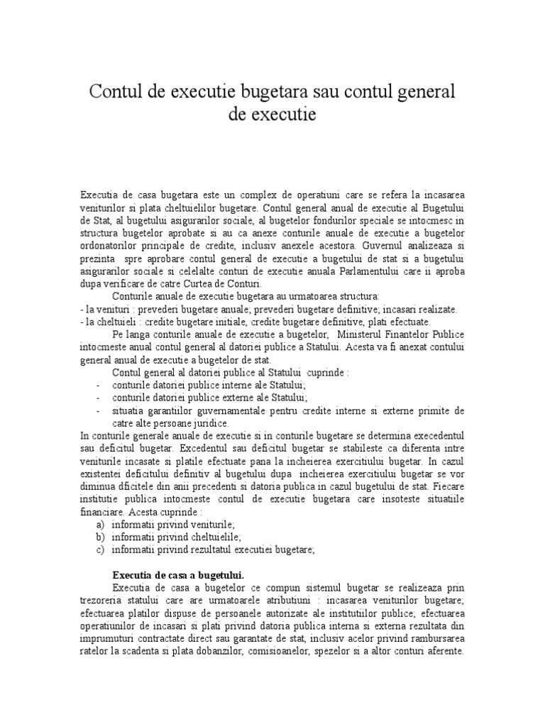 Www Referat Ro Contul De Executie Bugetara Sau Contul General De Executie