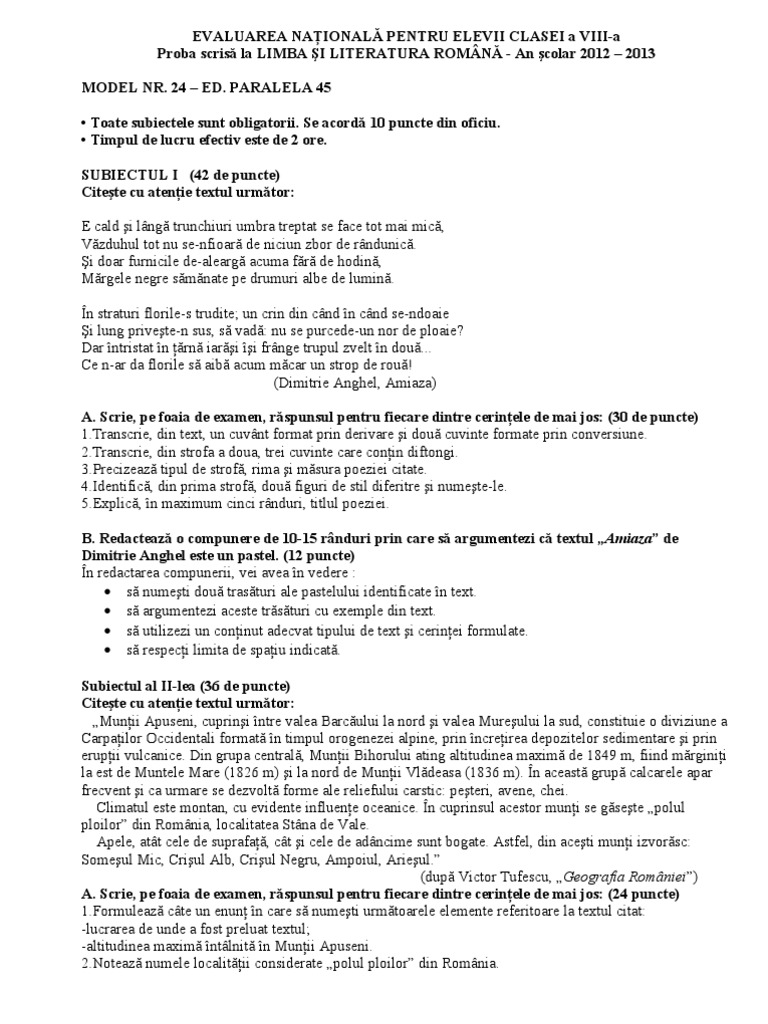 subiecte simulare romana clasa 11