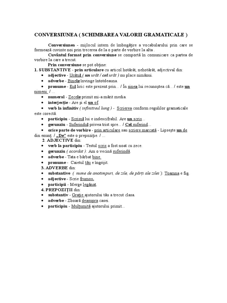Cuvinte Formate Prin Conversiune Exemple Pentru Substantivare Si Adjectivare