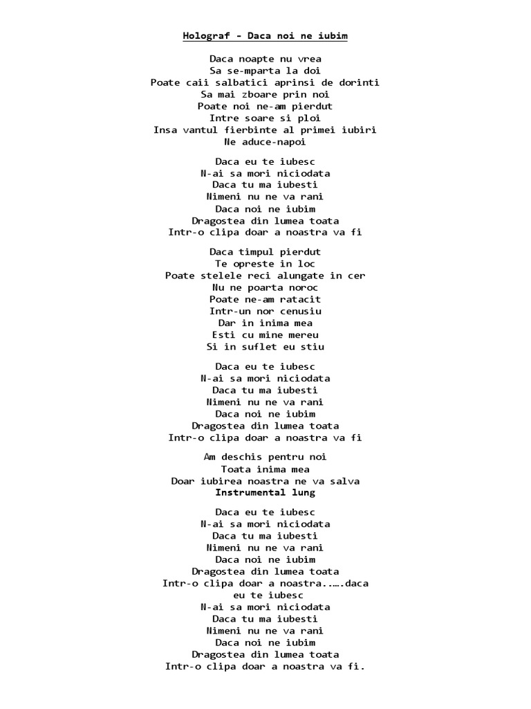 Holograf Daca Noi Ne Iubim Versuri