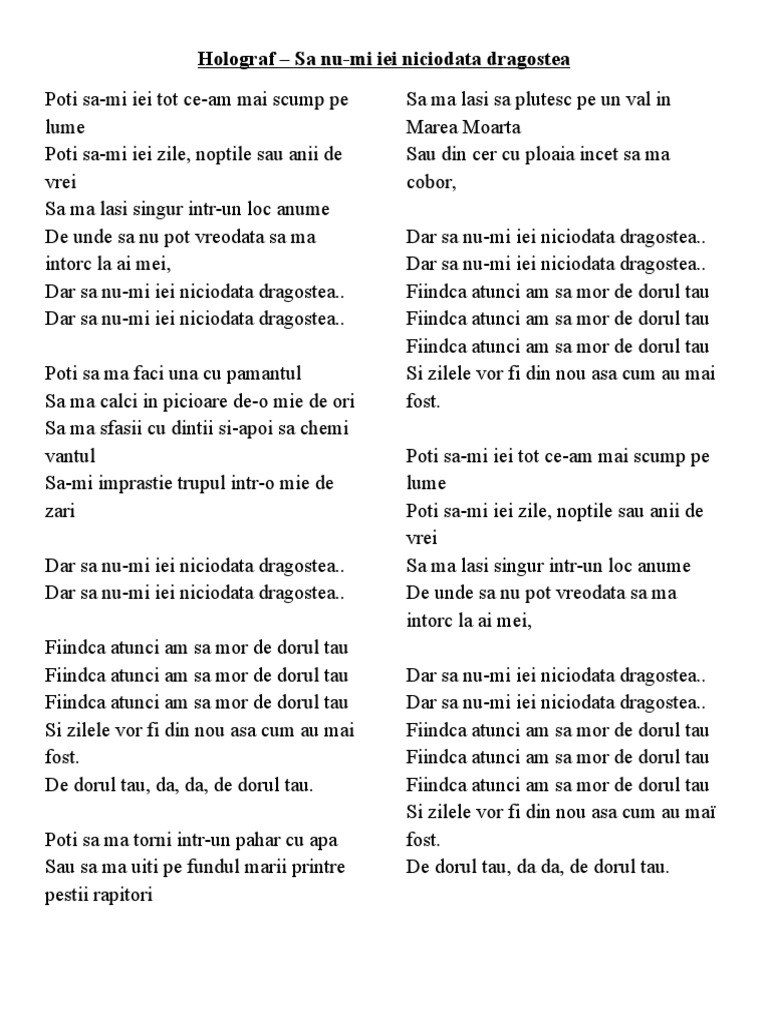 Versuri Holograf Sa Nu Mi Iei Niciodată Dragostea Versuri Lyrics
