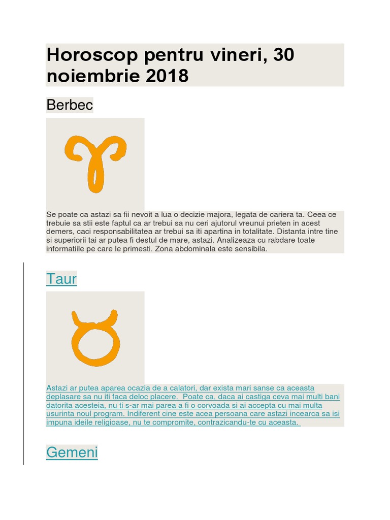 Horoscopul Pentru 30 Noiembrie 2018