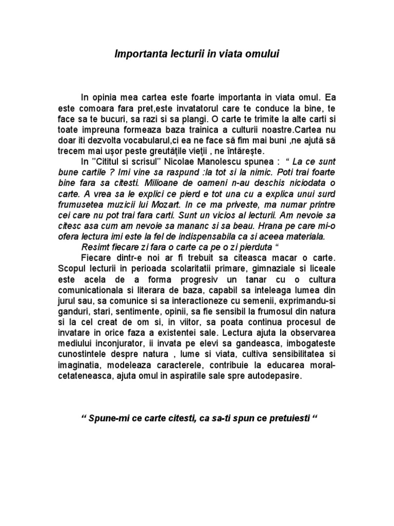 Text Argumentativ Despre Lectura