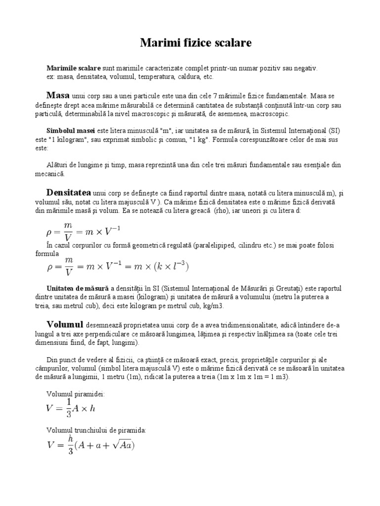 Marimi Fizice Scalare