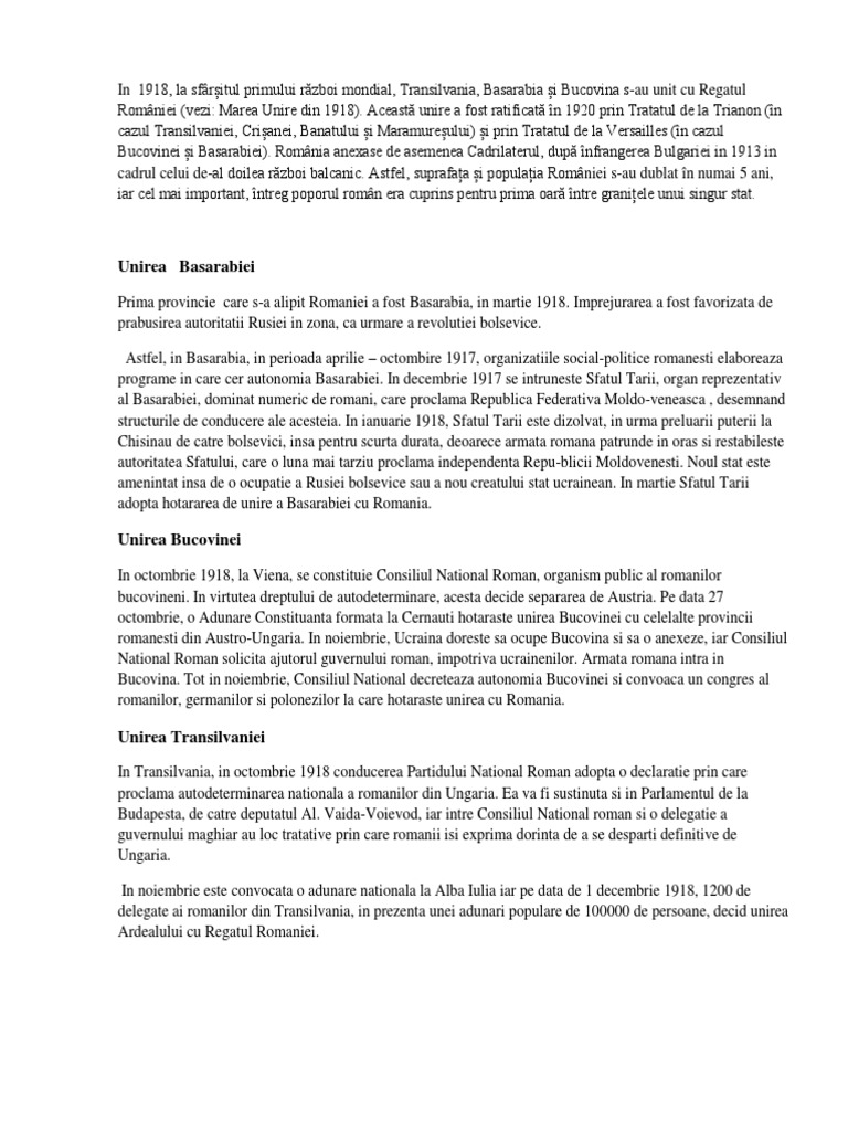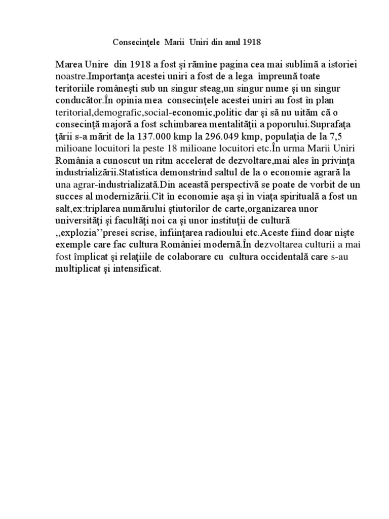 Marea Unire Eseu Bac