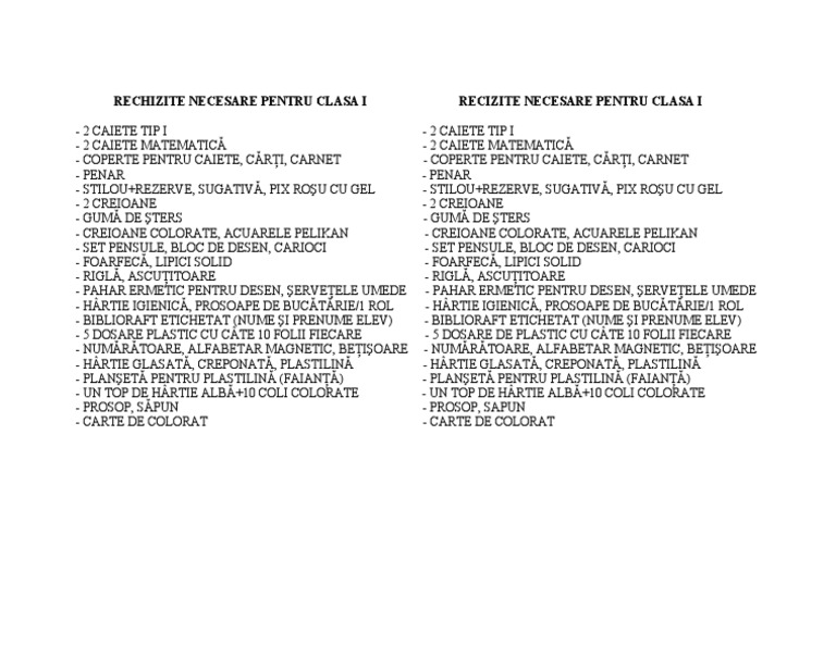 Lista De Rechizite Scolare Pentru Elevii De Clasa I