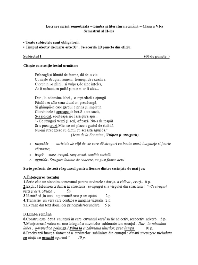 Lucrare Scrisa Semestriala
