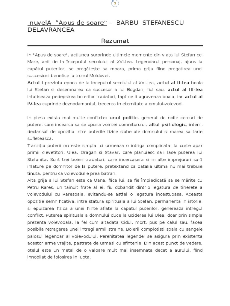 Doc Apus De Soare De Barbu Stefanescu Delavrancea Annamaria Pap Academia Edu