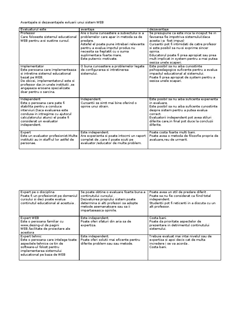 Avantajele Si Dezavantajele Evluarii Unui Sistem Web