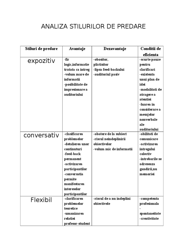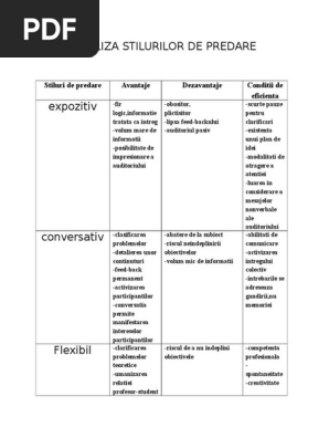 Doc Analiza Stilurilor De Predare Bogdan Mogos Academia Edu