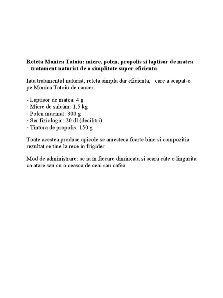 Reteta Care A Vindecat O De Cancer Pe Monica Tatoiu Se Prepara In Casa Si Face Minuni